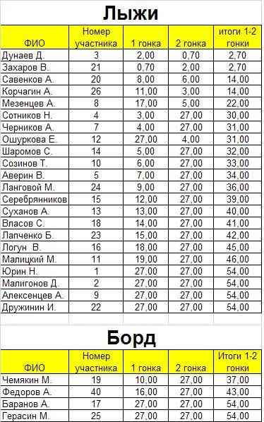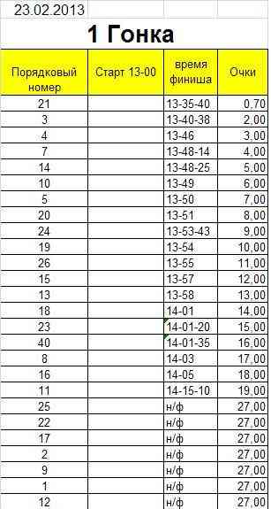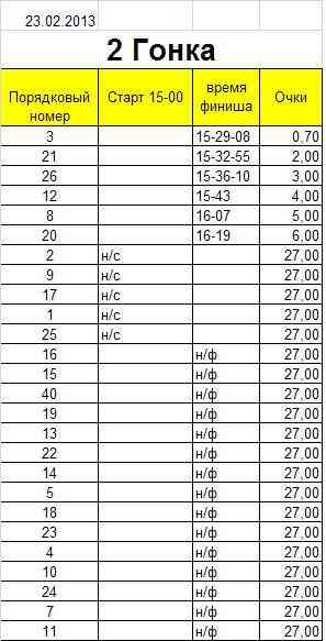 Результаты за 23 февраля 2013г