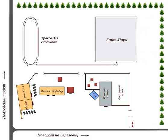 Схему расположения кайт-парка смотрите на карте комплекса.