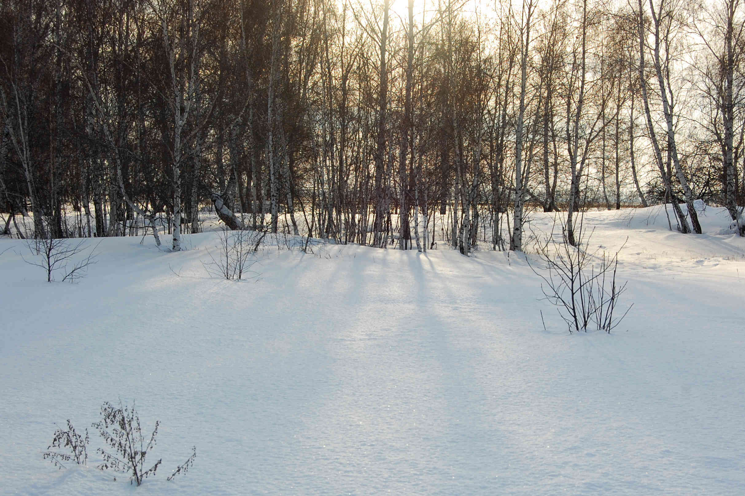 Домой шли практически всегда по своим же следам, местами их было ещё видно. По пути видели двух охотником в белых маскхалатах, идущих пешком. Охотники видели нас, обошлось без выстрелов. Но то, что они долго провожали нас взглядом и никуда не двигались, указывало на их удивление. Мы шли без остановок на чай, так как чувствовалось надвигающаяся тьма. И если к первой ЛЭП мы подошли по светлу, то последнюю форсировали уже в сумерках. Далее озеро с вторым знаком, поле по диагонали и о чудо - выплыв друг за другом из-за крайней лесополосы, мы увидели салют на Берёзке. Как тут не вкрасться смутным сомнениям - не может быть таких совпадений. И точно, салют устроили Виталя с Николаем, всё это время дожидавшиеся нас на поле. Это было фантастически!