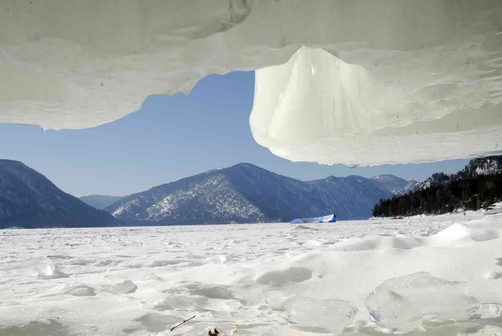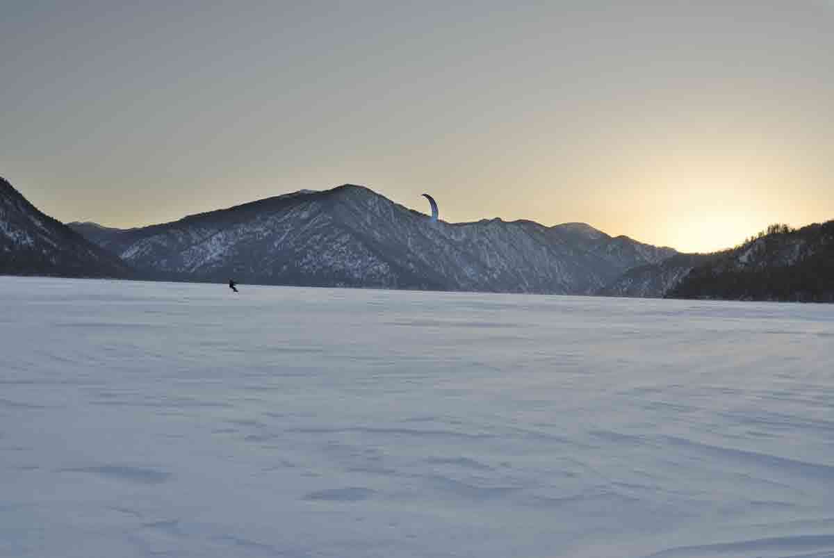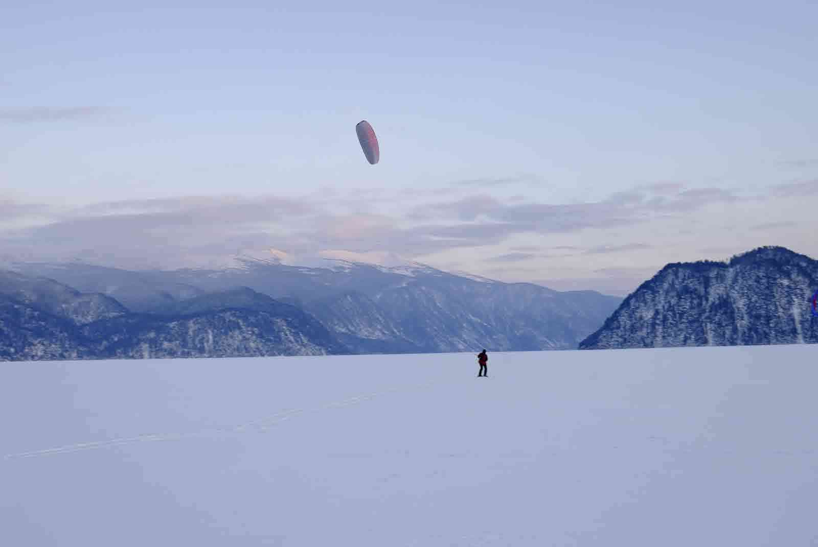 Сноукайтинг на озере Телецком.