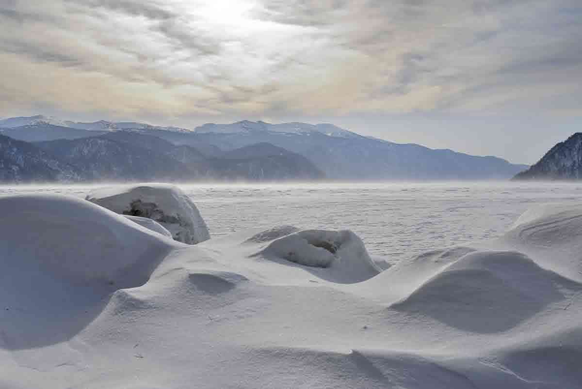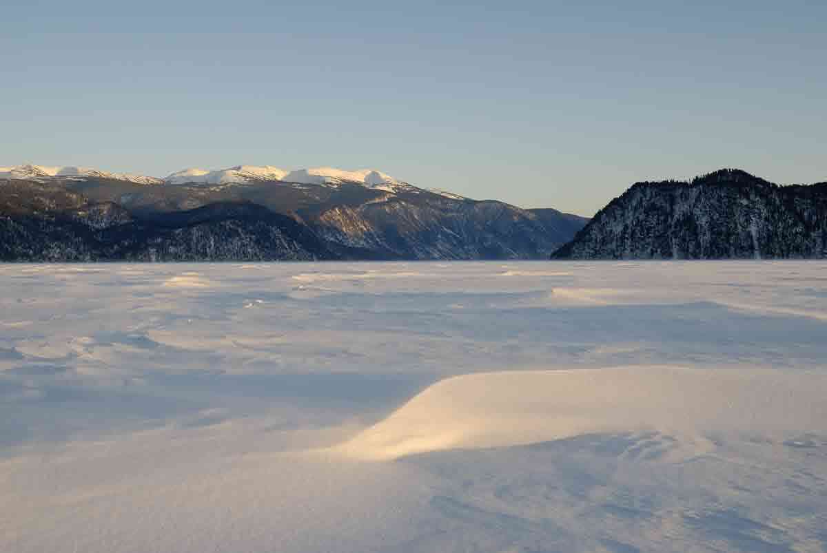 Март 2010 года. Сдувание пыльцы невинности с девственной поверхности Телецкого озера.