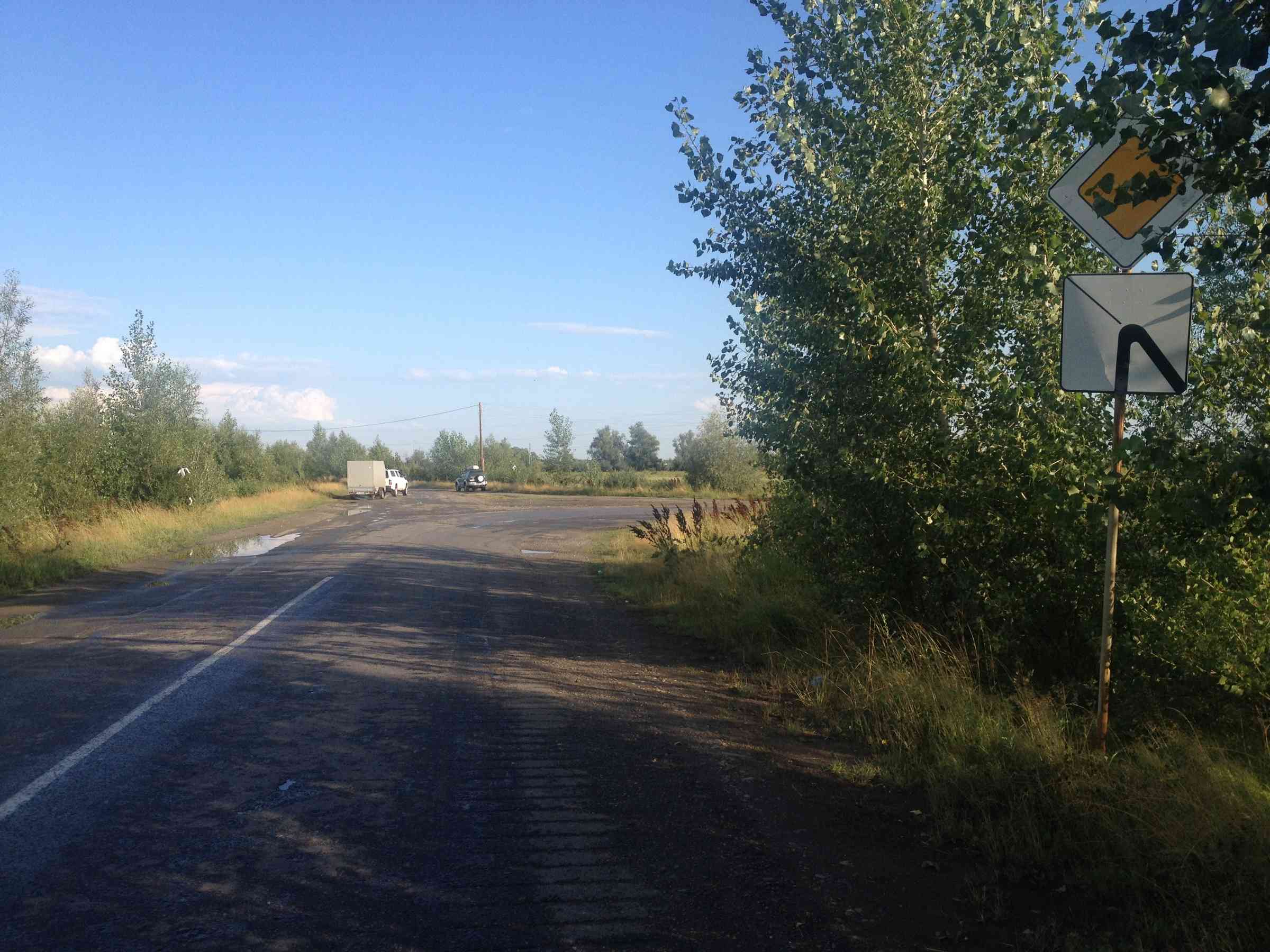 Проезжаем мостик, по дороге, ведущей в Затон. - дорога раздваивается <<ЗНАК >>(главная на право), мы едем на лево.