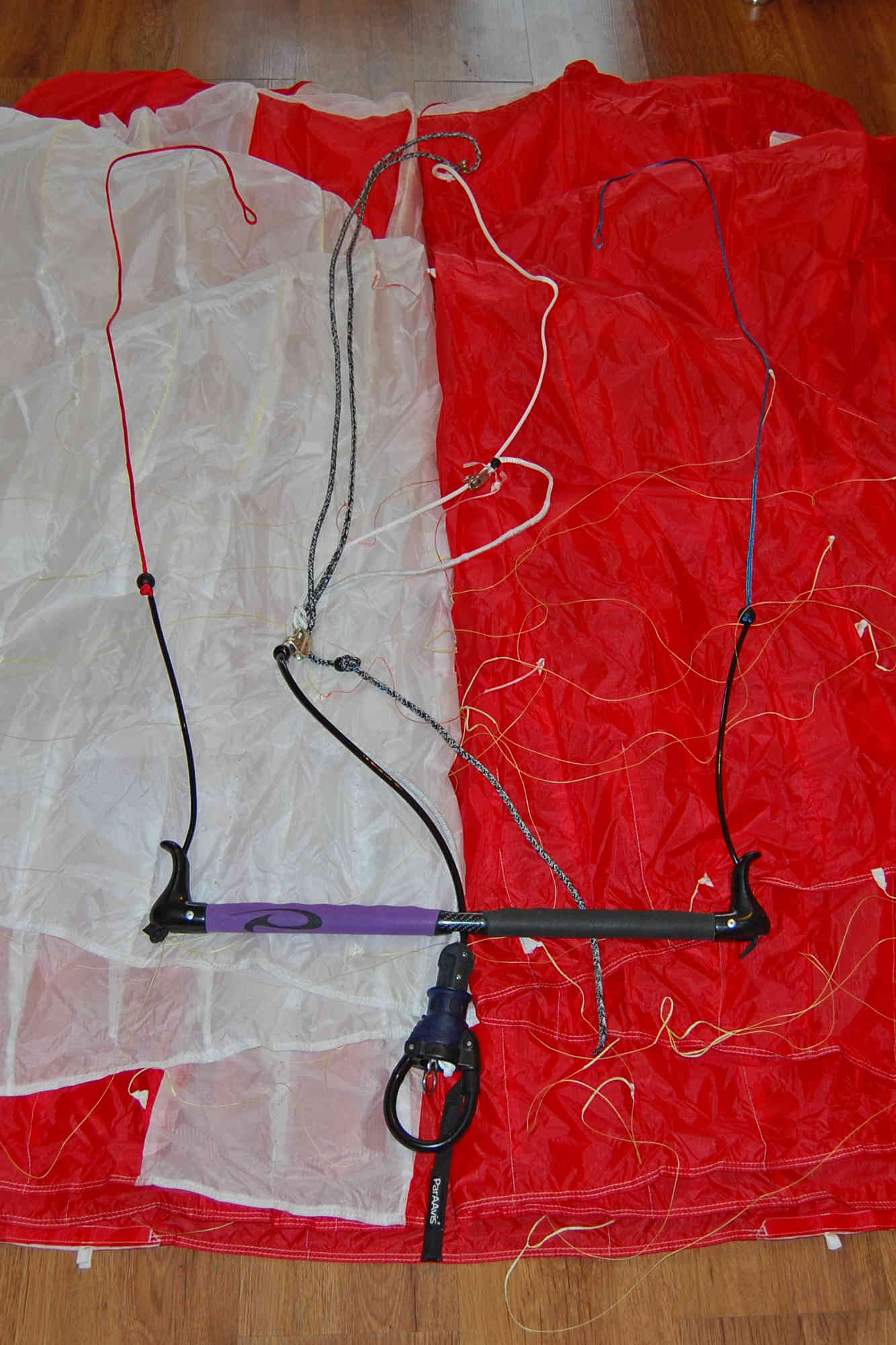 На днях пришёл пакет счастья. Хотя, кого я обманываю, и говоря современным языком - не пакет, а пакетище! С Paraavis Octane II 12 в красно-белой окраске внутри. К кайту прилагались: комплект строп, включая пятую страховочную; фирменная планка производства Параавис с щелевым двух блочковым триммером и брейками управляющих строп. Планка, как и чикенлуп очень похожи на Ozon'овские из прошлых комплектаций. Единственное различие, которое не передают фотографии - мягкий материал из которого выполнены защита депаверной стропы, он же на брейках возле планки с пластиковыми шариками на концах, чтобы при парковке кайта не проскальзывали перчатки, и, видимо, в пальце чикенлупа, так как он тоже в меру мягкий, по сравнению с Ozon'овским. Напомню, что кайт клапанный - на передней кромке расположены восемь клапанов, прикрытых сеточкой от попадания внутрь снега, мух и прочего мусора. На задней кромке четыре спускных клапана на липучке - два больших основных ближе к центру и два маленьких на ушах кайта. Страховка реализуется как через 5-ую стропу, так и за одну управляющую. Сборка кайта не составила труда, все стропы пронумерованы. Единственное, что заставило задуматься - это пятая стропа, эластичная часть которой по умолчанию находилась на планке, а не как у Extazy под куполом. При попытке вытащить её из чикенлупа и специального отверстия на триммере, она в них застряла из-за того, что верхняя защитная оплётка собиралась в комок и надёжно застревала в отверстиях. Не хотелось бы, чтобы это случилось при аварийной ситуации в поле или на воде. Поэтому перенёс её под купол, зима покажет, где ей место. Ждём зиму!