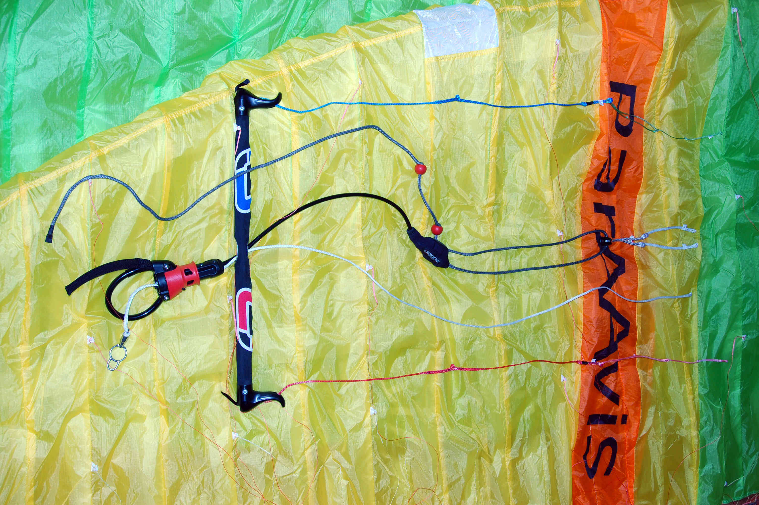 Для начала переставил узелок на задней кромке, пододвинув полиспаст ближе к куполу. Тяги прибавилось, нестабильности тоже - стоило перетянуть планку, купол останавливался, а если ослабить больше, купол вылетал в край окна и подворачивал уши. Но если управлять "на мизинчиках", чувствуя предел заднего свала, то становилось возможным перемещение в бакштаг.