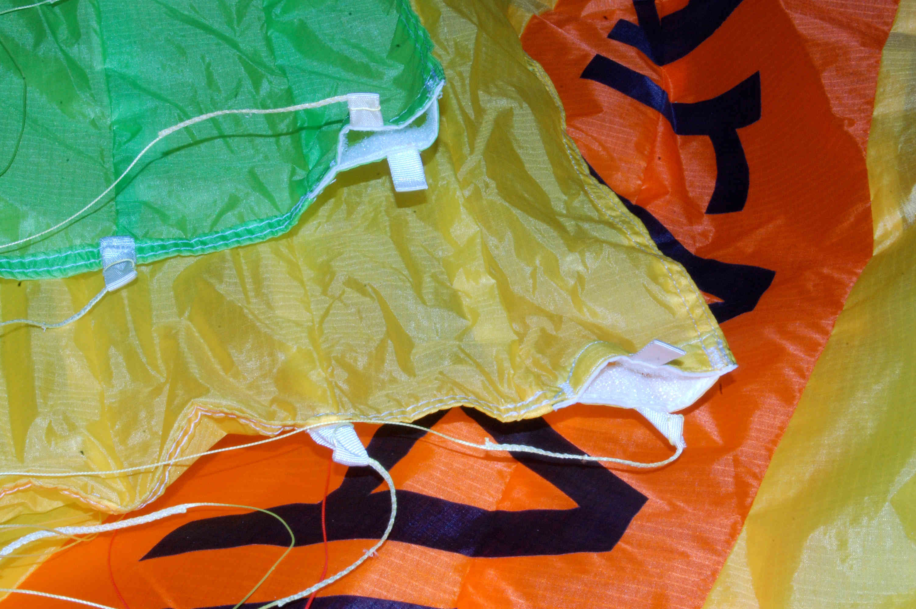 Я уже писал, что поджатие задней кромки узелками в месте крепления полиспастов к сборной веревке от кромки добавляет кайту тяги в слабые ветра, добавляет управляемости, но ухудшает стабильность "ушей", если с этой же настройкой попасть в сильный рваный ветер.
