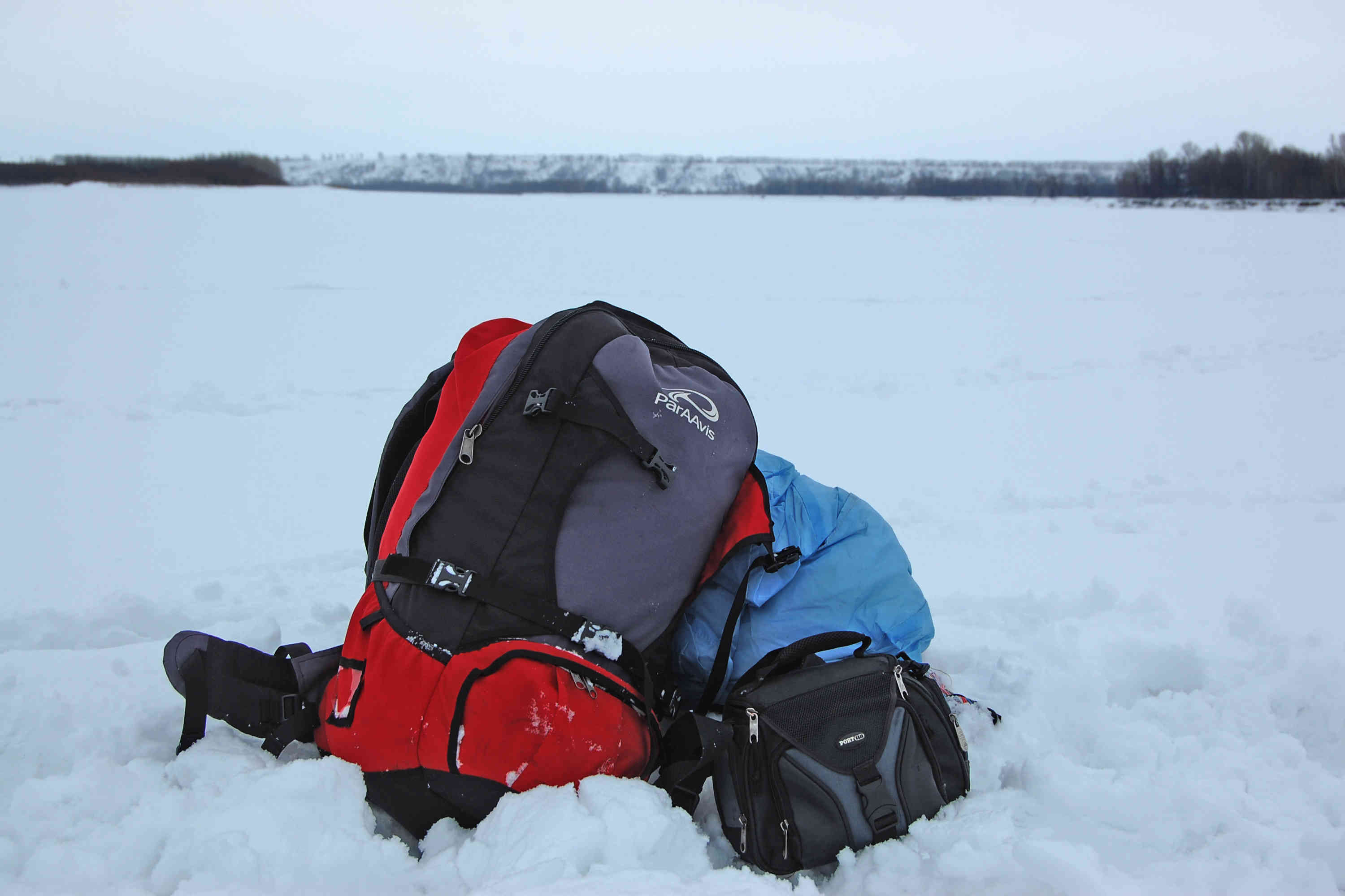 Ветер стихал. Стихал по-нашему - не равномерно и порывисто. На одном таком провале я отвлёкся на рацию и промотал момент с управлением, стропы ослабли и невидимые потоки медленно, но неотвратимо превратили крыло в бантик. Пришлось запарковаться и идти расправлять купол. В процессе перебирания строп заметил, что регулировочные узлы на ряде Б стоят в положении на слабый ветер. Я о них помнил, забыл только сделать поправку. Исправил, "не прошло и года". После перестановки узелков в нужное положение, ехать стало, по моим обострённым усталостью ощущениям, немного комфортнее. Дальше мы без проблем спустились с обрыва и в слив выехали к Оби, где также беспрепятственно, по снежной горке съехали на русло и почти сразу остановились под берегом отдохнуть и пообедать.