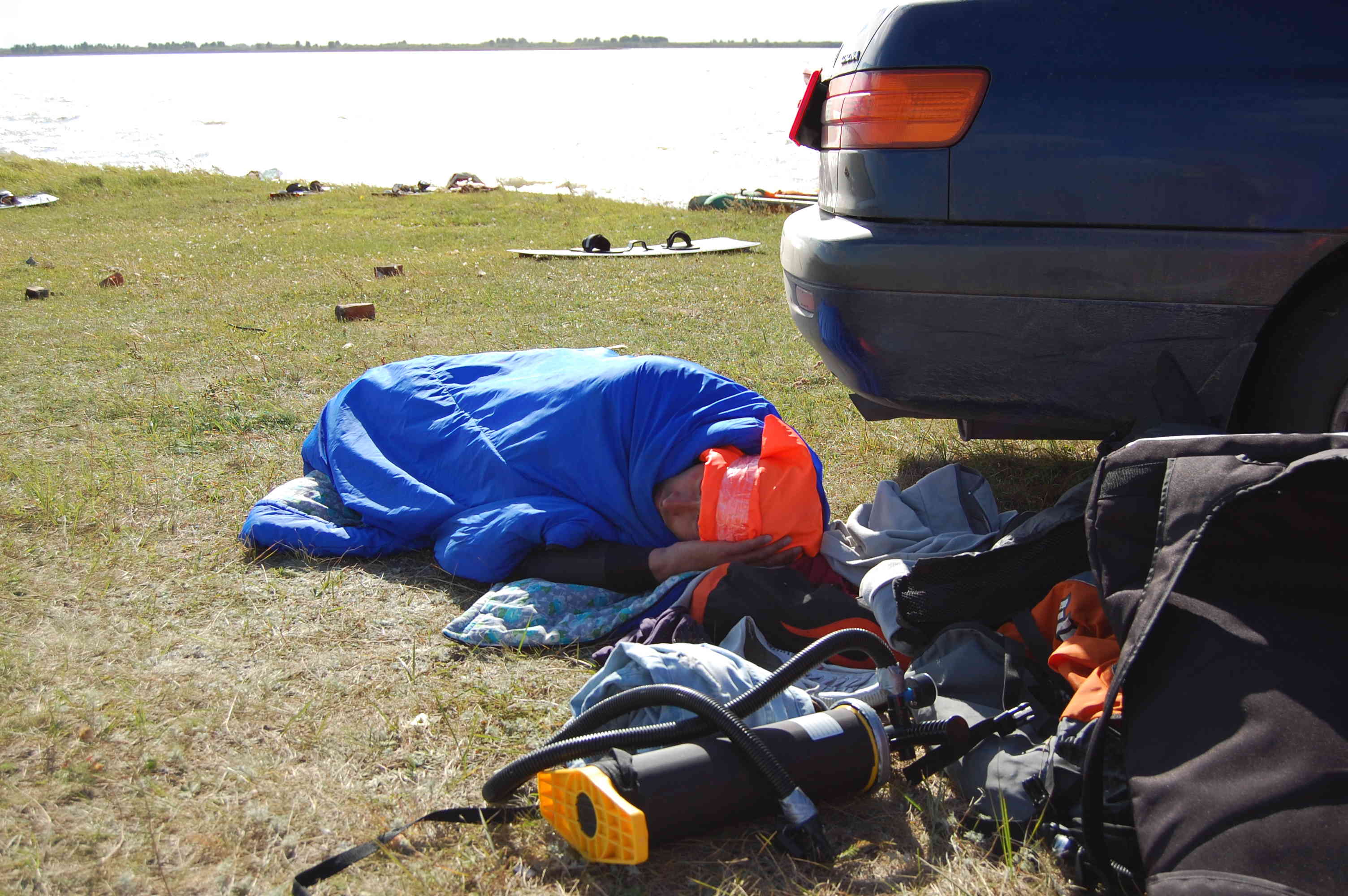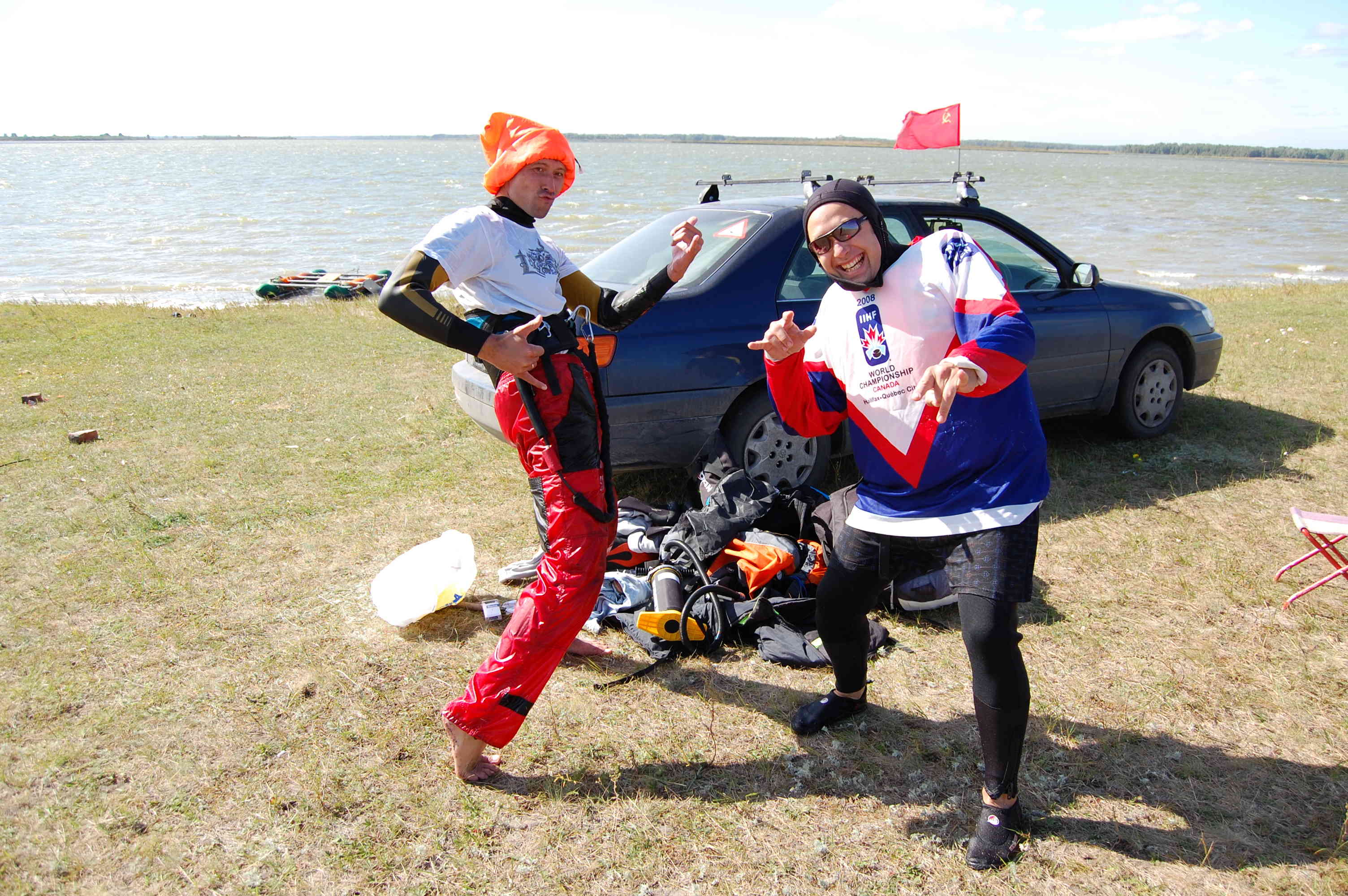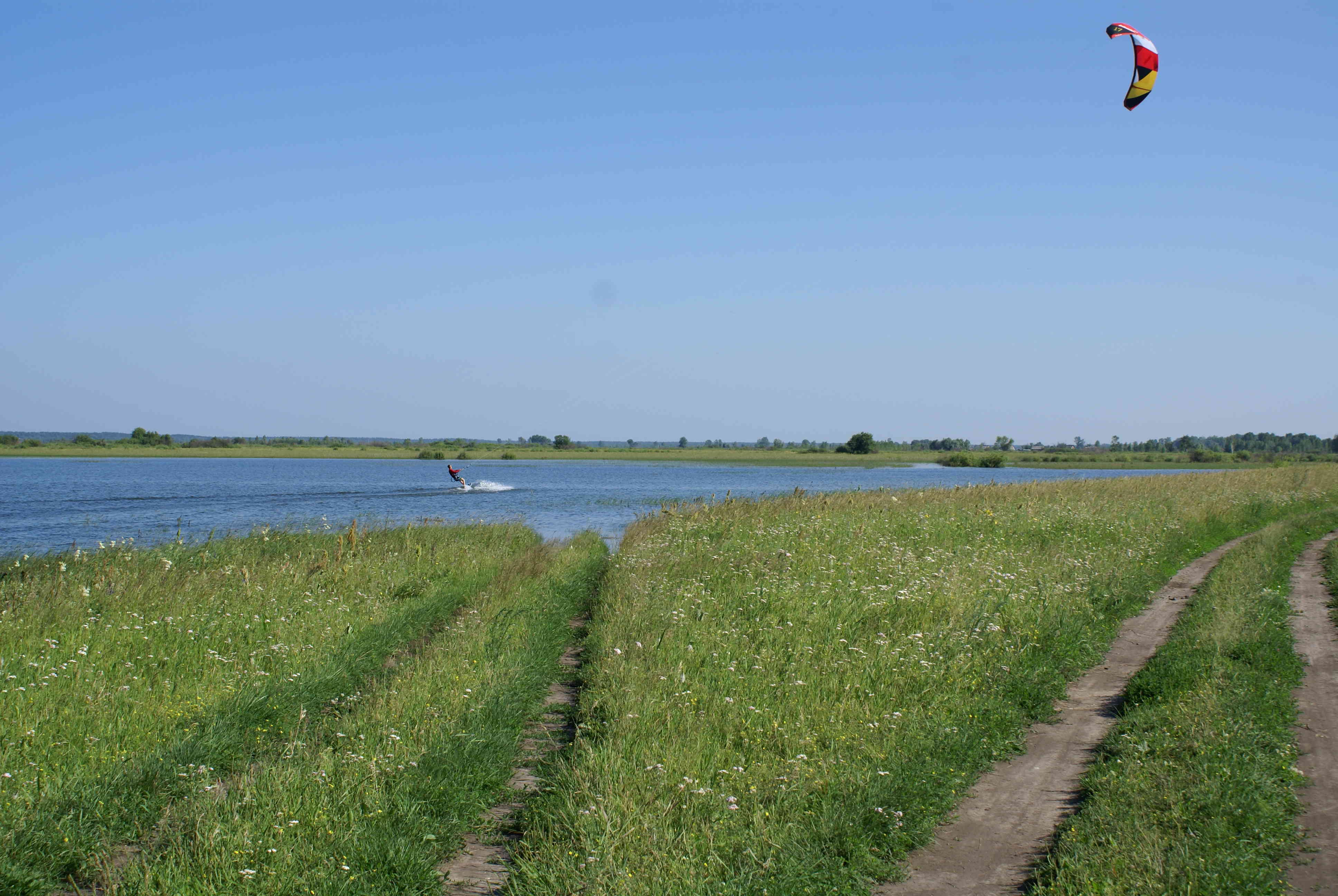 Соревнования кайтеров во время любительского регионального чемпионата на Енисее в таежной местности, 31 марта 2013 г.