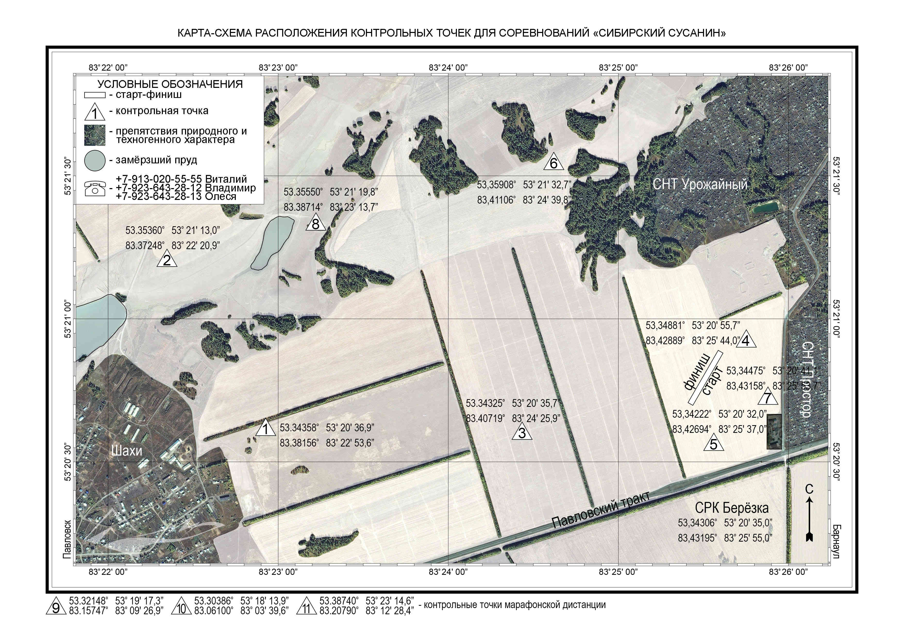 Суть дисциплины «Сибирский Сусанин» – выставляется дистанция протяженностью 20 – 80 км. На дистанции располагаются знаки, которые можно огибать в любой последовательности. Каждому спортсмену перед стартом вручается точная карта местности гонок с GPS координатами каждого знака. На дистанции гонок встречается много естественных препятствий – деревья, кусты, овраги, перемёты снега и т.д. Проложить прямой курс от знака к знаку невозможно. На каждом знаке располагается штырь, на который одеты кольца (на каждом знаке своего цвета). Задача каждого спортсмена (постановка задачи на брифинги) - привезти на финиш все кольца разного цвета. При отсутствии какого-либо из колец, результат не засчитывается. ( Важно до вести кольцо до финиша. Доводы, что вот меня видели , что я брал кольцо не принимаются. ) Умышленно, не стоит брать несколько колец!