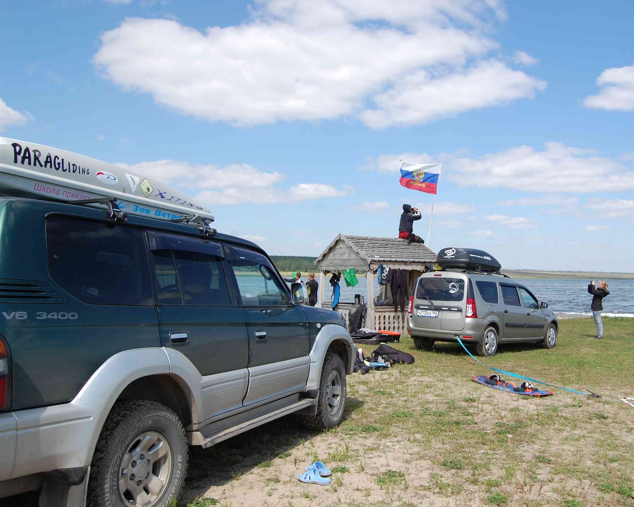 Начну свой фото-рассказ с г. Синюхи. До этого за фотоаппарат почему-то даже не брался. До Новичихи доехали штатно к вечеру, в две машины. На косе, где ночевали первую ночь, нас уже ждали Виталя и Дима с семьями. Ветерок дул слабый, так что ни о каком кайтбординге речи не было. Дима, правда, из-за большого желания облачился в гидрокостюм и полез в воду заниматься бодидрагом. Спать отправились далеко за полночь, засидевшись у душевного костра под безоблачным звёздным небом. На следующий день отправились на другое место того же озера, называемое в народе Сопками. Там за сменившим направление ветром собиралась мини кайт-тусовка. Несмотря на малочисленность кайтеров, здесь присутствовали представители Кемеровской, Новосибирской области и, естественно, Алтайского края. Катались в основном от редких небольших приходов из-под туч, иногда вперемешку с дождём. Для меня было главным обмыть новую досочку, подаренную Олесей и Виталей на мой 33-й день рождения. И я это сделал, откатав минут тридцать, изредка оглядываясь на надвигавшуюся с дождём тучу. Можно было бы ещё покататься, но не хотелось потом в спешке сворачивать мокрый кайт под порывы усиливающегося ветра, поэтому и не стал затягивать с выходом на берег. Хотелось бы добавить, что доска называется тоже Джокер, как и купол, такое вот совпадение. Так как ветра больше не ожидалось, было принято решение вечером перебираться на озеро Белое.