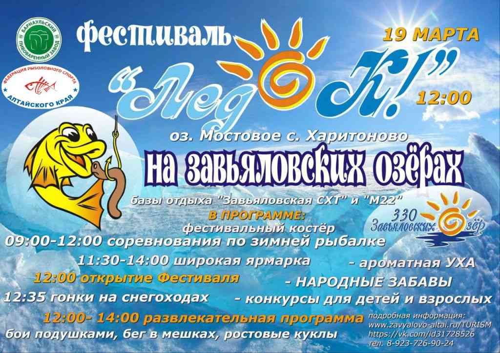 В прошедшую пятницу мы с Виталей отправились на оз. Мостовое в Завьяловском районе, чтобы принять участие в фестивале "ЛедОк! На Завьяловских озёрах". В рамках фестиваля проходили соревнования по рыбной ловле, проводимые Федерацией рыболовного спорта Алтайского края. Пока рыболовы соревновались на льду, на берегу шли соревнования на снегоходах. И всё это под аккомпанемент весёлой ярмарки с праздничным костром и весёлыми конкурсами. А в завершение праздника для спортсменов и гостей на сцене выступал Константин Евдокимов.