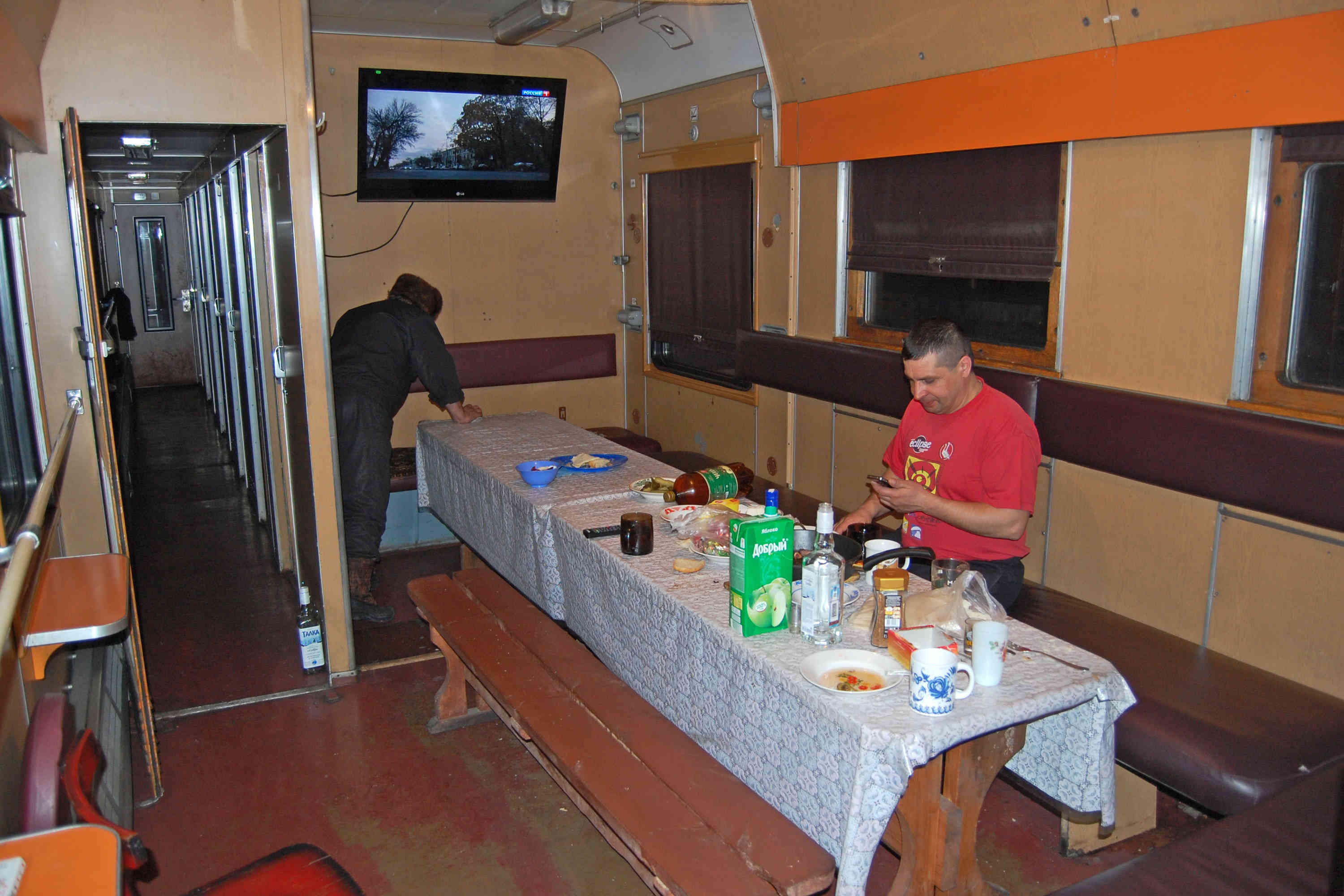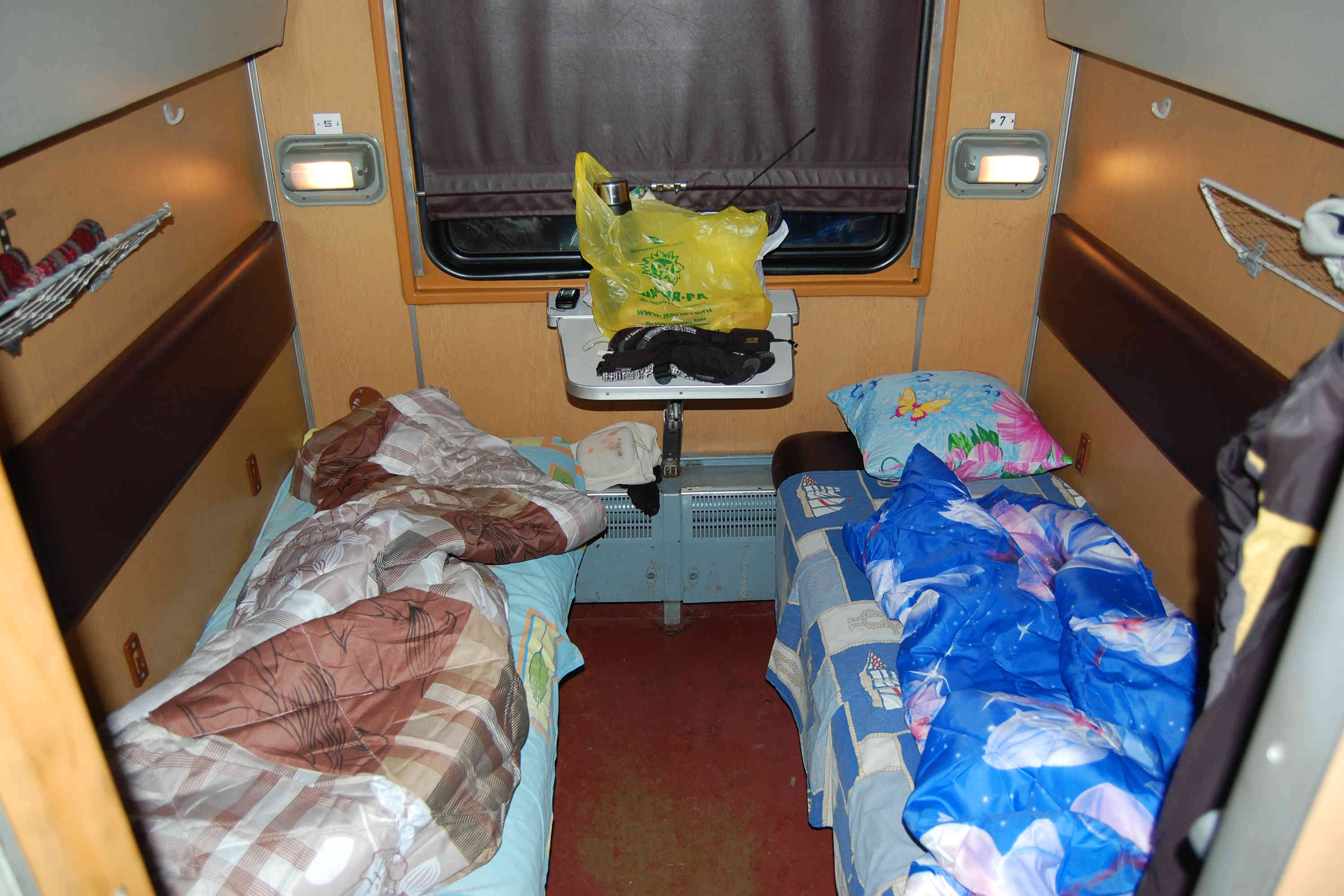 Ехали через Ребриху, так как дорога здесь лучше, хоть и немного длиннее, чем через Тюменцево. Затем ещё сутки на поезде (шутка). Поезд никуда не ехал! Два настоящих, полностью исправных вагона здесь используются в качестве жилья. В одном из купе вагона с буфетом мы и жили. Это не единственная база на озере, как минимум рядом находится ещё одна, сделанная из обычных домиков.