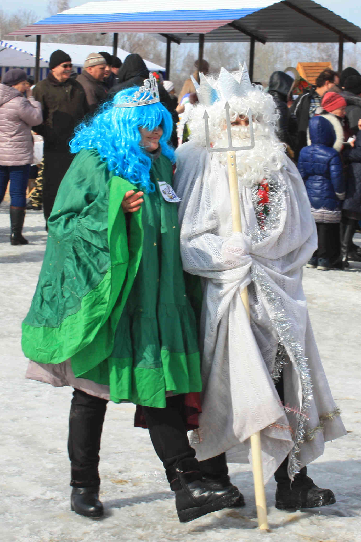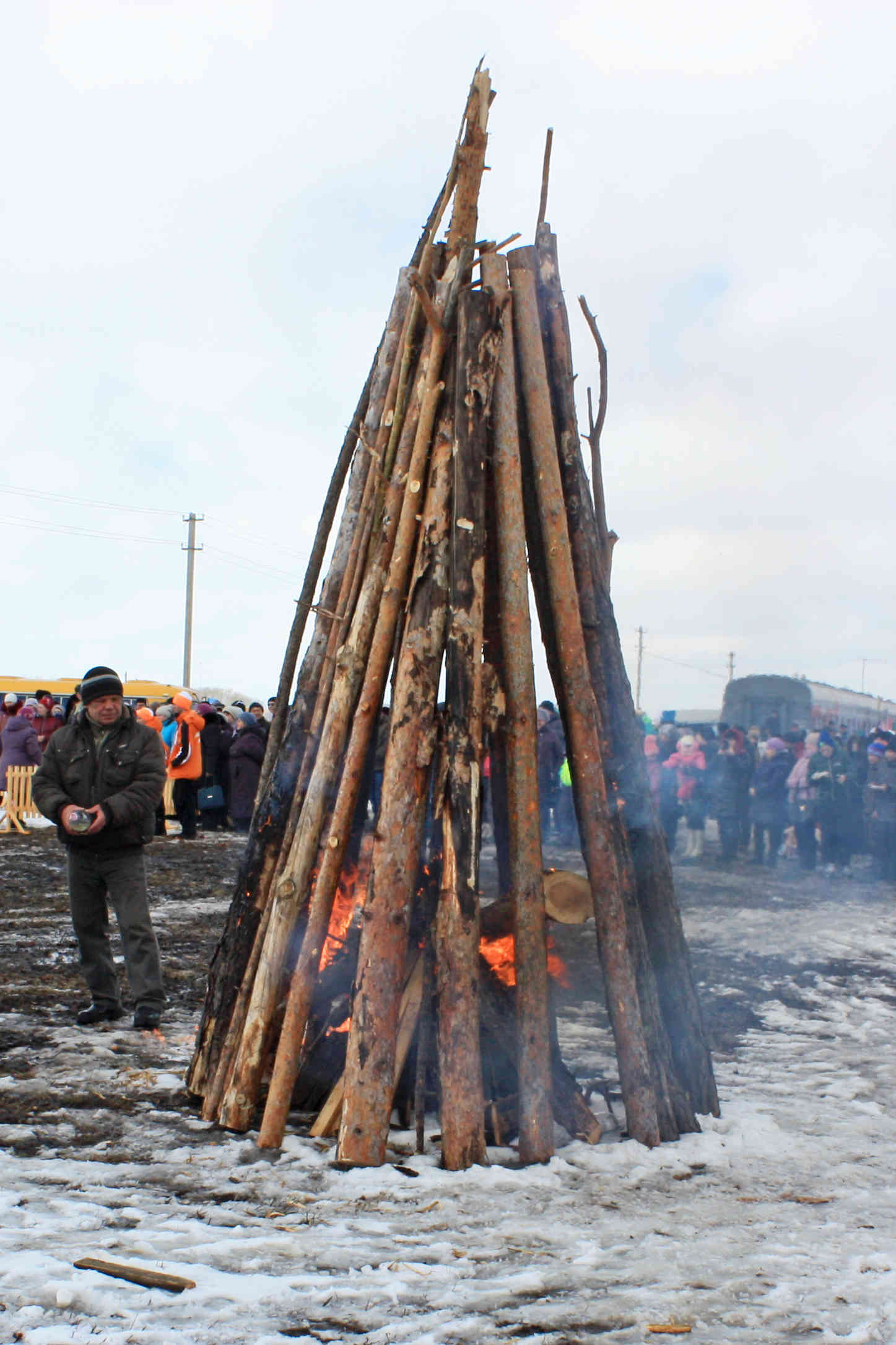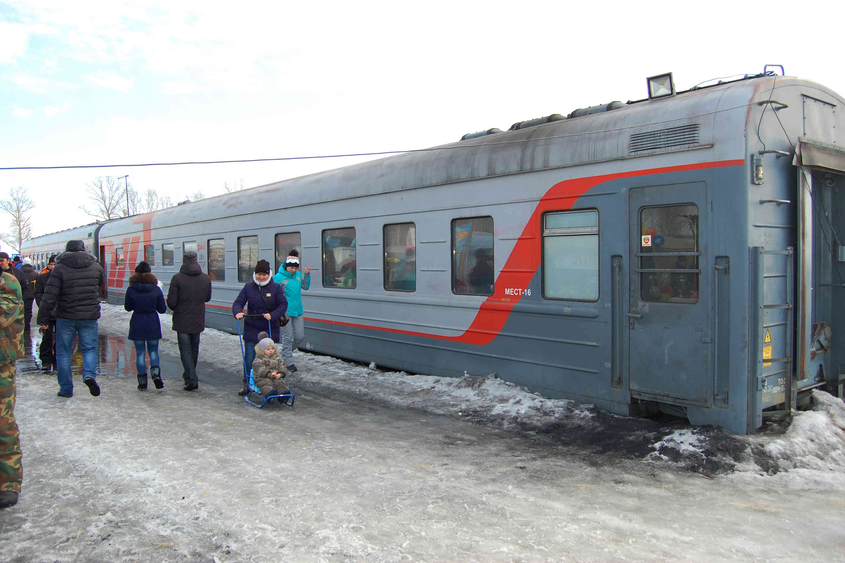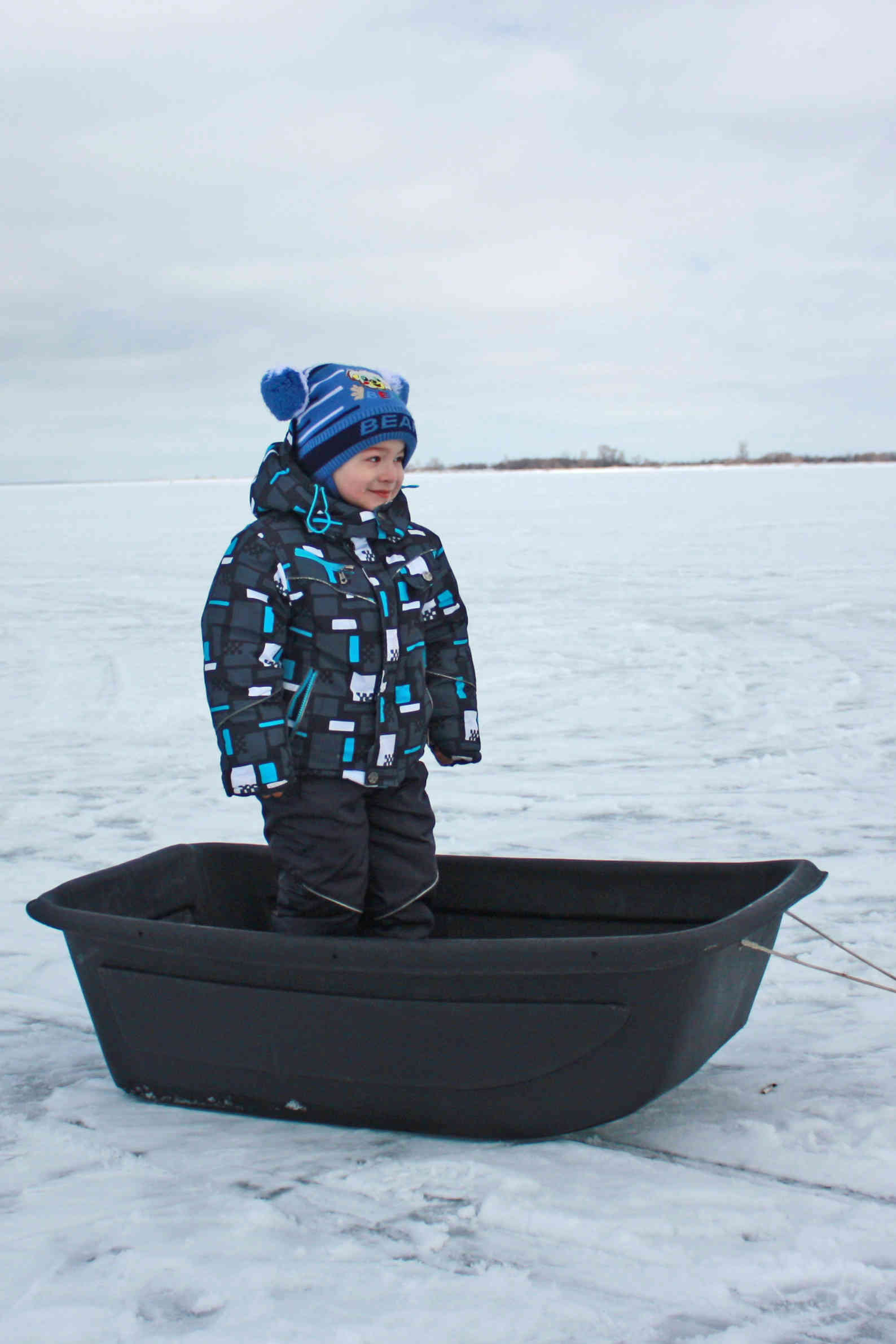 Просто так кататься уже на скучивает, просим ватрушку и берём одни рыбацкие сани-корыто, катаем в них всех желающих детей. Родители фотографируют довольных детей на фоне непонятных штуковин.