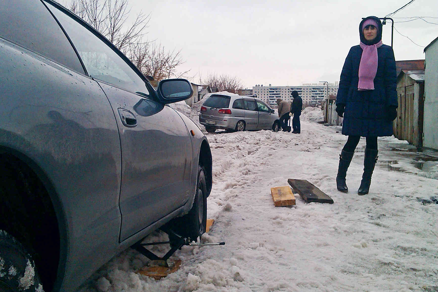 И уж больше пол дороги до гаража прорвались, как возникло на пути препятствие, которое и объехать можно, только притормозить пришлось. И прям сразу новое место нашей дислокации определилось. Тудым-сюдым, машинка на пузике лежит, колёсиками по ледку шуршит, но двигаться с места не хочет! И как-то оперативно все службы сработали на удивление после трудового дня - мозг вспомнил про домкрат, ножки принесли поленья, ручки подкопали, приподняли, подставили - вытащили репку. А сосед поглядывает, опыт перенимает и на практике применяет. Да приговаривает - ох, если бы не вы, милкИ, я бы здесь до лета стоял, всем проехать мешал. Тут прибежал народ, завёл хоровод - кто назад, кто вперёд, кто советы даёт - левее колёса, левее, а теперь правее! От такого внимания, в виду своего воспитания железный конь копытом бьёт и в стойло идёт. Тут и сказке конец, но на горизонте маячит немЕц. Полофольксваген - говорит меня звать, - я по-русски не понимать, с места сдвинуться не могу, твою мать! Мы немца за ноздри взяли (аккуратно), об снег пузо ему почесали и по добру поздорову восвояси отправили. Стало ясно, что нужно морозов не дожидаться, а сейчас отсель выбираться и ближе к дому родному припарковаться.
