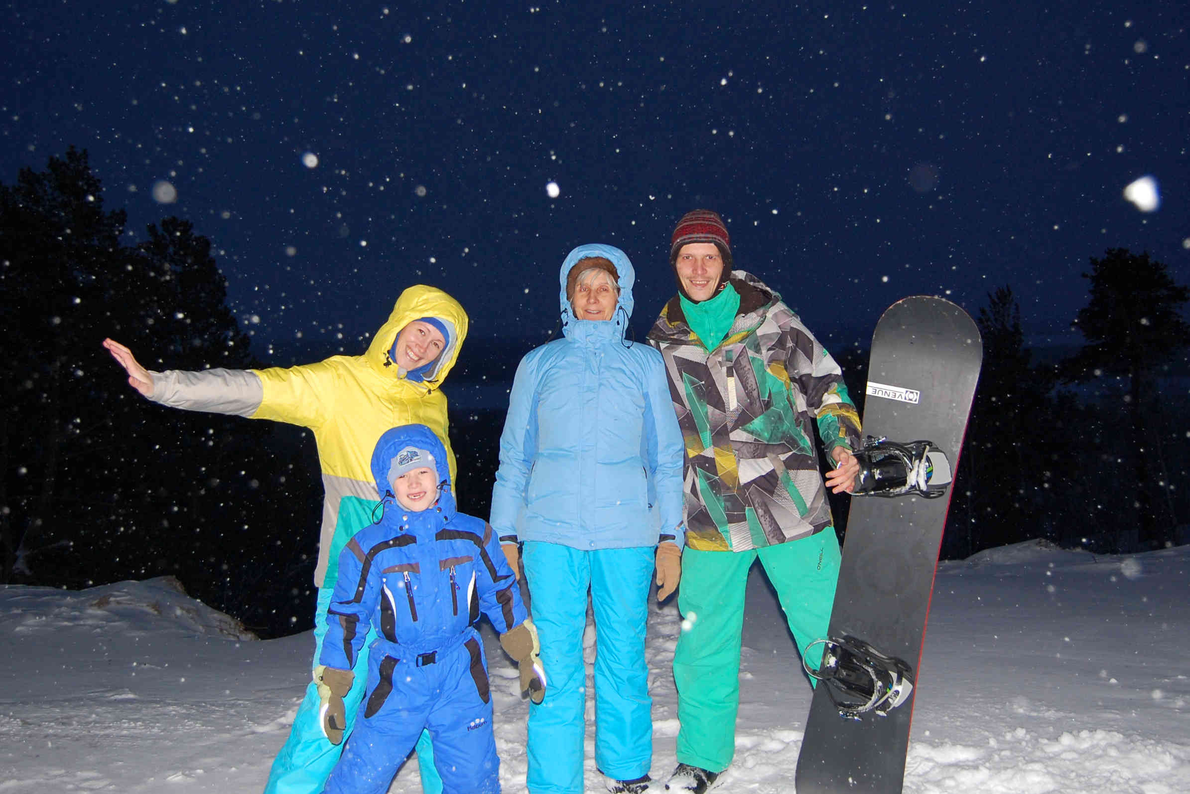 В остальном всё чудесно - снега много, пухляк найти можно, людей тоже много, гармонь поёт! Покатались полтора часа. Половина спусков сделал с Вовой на доске, держа его за подмышки. Детский восторг - бесценен! Ну и бабушка чуток отдыхала, пока мы скатывались.