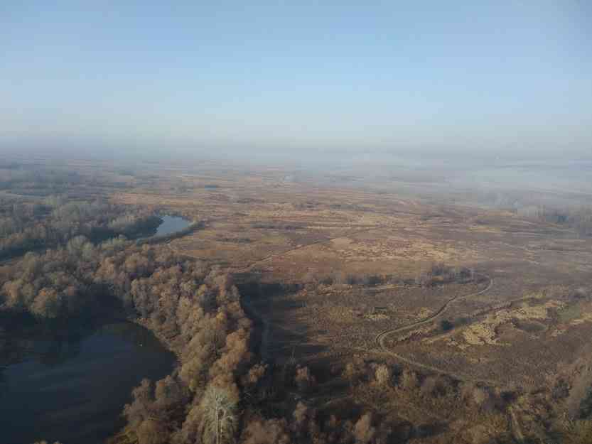 Об этом озере я слышал давно, даже пару раз видел, пролетая мимо по дороге в Солоновку. Озеро большое, акватория около 5 км.кв, богато рыбой, там проводят рыболовные соревнования, но на автомобиле туда путь затруднен. И вот в погожий воскресный сентябрьский денек я решил совершить однодневный маршрут до озера, да со спиннингом. Прогноз на утро небольшой встречный ветерок 1-3 метра, зато вечером назад уже хороший попутняк! Привязав с собой 10 л. бензина, заправив по полной 12 л. в бак, в 9 часов утра я взлетел и взял курс юг, расстояние до озера примерно 80 км. Погода отличная, солнышко, легкий туманчик, настроение замечательное! Правда сила ветра оказалась сильнее, чем прогнозировалось, поэтому летел не высоко и все равно не быстро около 40 км в ч. Пролетая Калманку, проконтролировав остаток топлива с помощью фото с телефона, понял, что бензина до места может не хватить, но принял решение лететь дальше, увеличив высоту, благо с собой есть бензин дозаправиться.