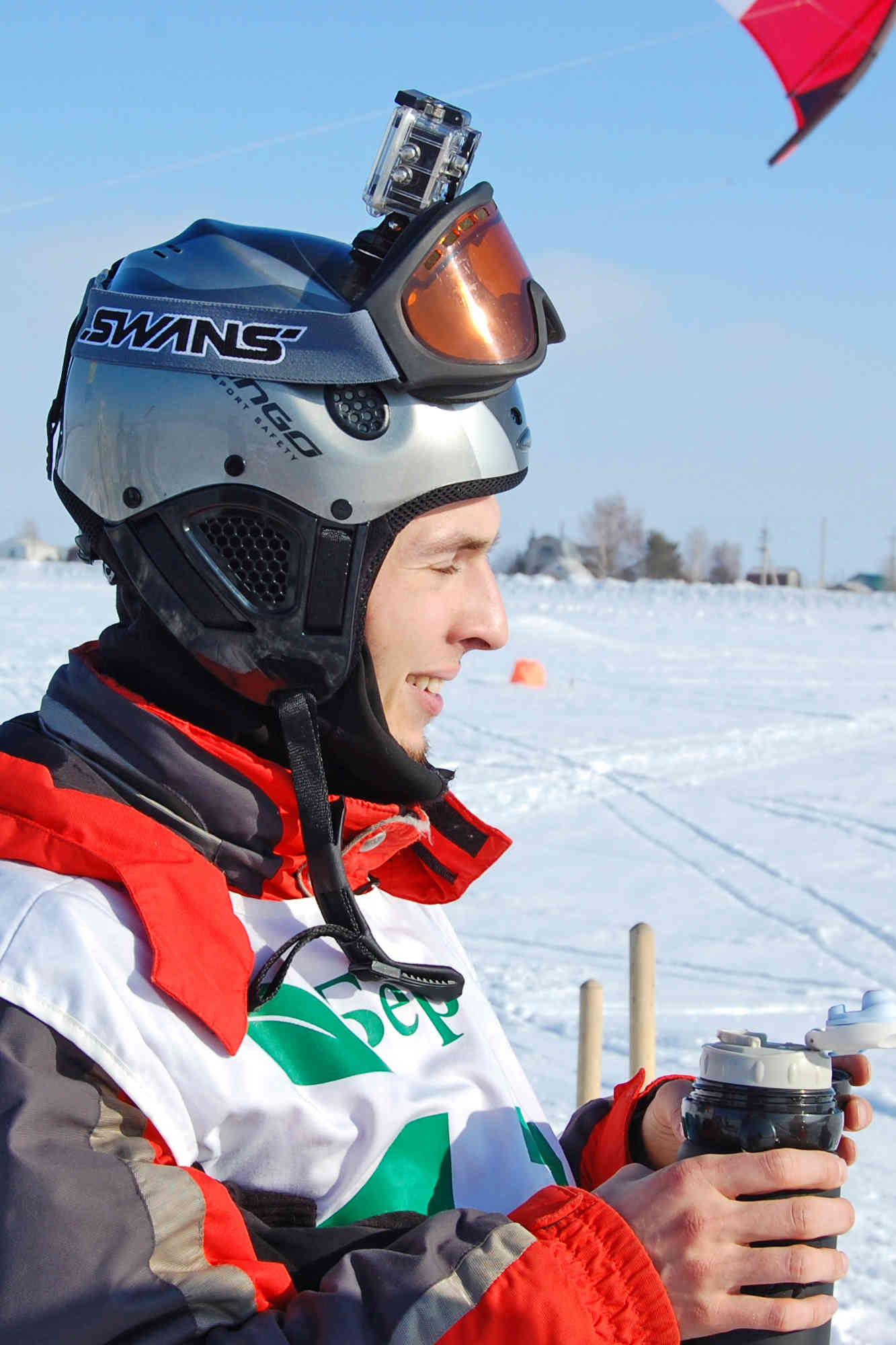 Я запускаю кайт, но с открытым клапаном он нестабилен, а ветер паршивый - так участвовать нельзя. Лежу в сторонке, вижу как уже дали старт, народ поехал. Думаю как посадить кайт, пока все заняты чтобы помочь. Опять хлопок, кайт не помню уже как на земле вверх ногами, держу за стропы, а он тянет сильно... Попробовал зацепить на лыжу - фиг там, сила такая, что все выдергивает. Отпустил на страховку. Ух. На этом все.